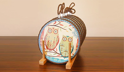 杯垫采用螺旋吊绳,便于悬挂。表面采用耐热陶瓷和喷画工艺,美观更实用。