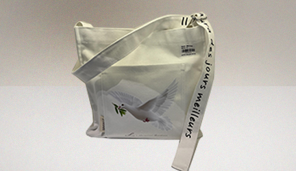 帆布包画面主体为宋氏祖居主题LOGO与和平鸽
